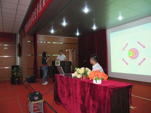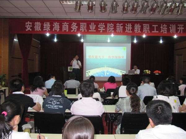 6月8上午,学院董事长陈孝云在阶梯教室五楼报告厅为广大新进教职工作了《爱在蓝天下 共享绿海荣》报告。