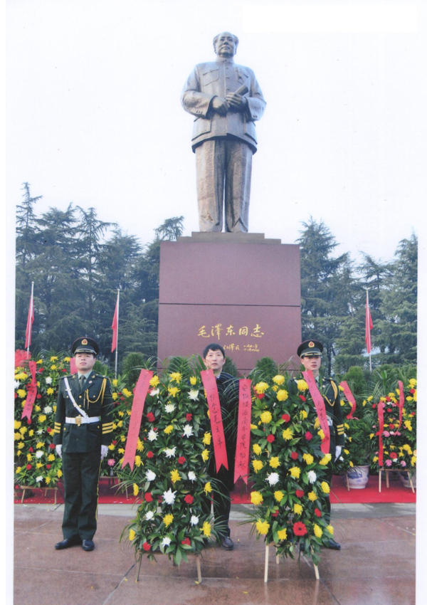 12月25日,陈孝云董事长在韶山毛泽东铜像广场,代表绿海学院向毛泽东主席铜像敬献花篮