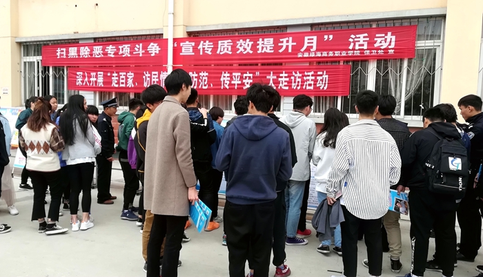 为切实贯彻落实、省教育系统深入开展扫黑除恶专项斗争工作部署,保障校园及师生生命财产安全和学院安全稳定。3月22日上午,365集团保卫处联合辖区锦绣派出所在教学楼广场共同开展扫黑除恶专项斗争“宣传质效提升月”活动。