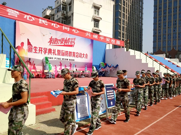 为进一步加强警、校合作、巩固警民共建成效,有效提高广大高校师生的防范意识和防范技能,广泛发动社会公众关注并参与打击和防范涉众型经济犯罪工作,增强入学新生的法律防范意识。9月4日上午,学院保卫处、武装部联合经开公安分局经侦大队会同治安大队、辖区锦绣派出所等部门共同在院体育场、科技楼广场开展”警心民心同心 共建平安校园”警民共建宣传活动。