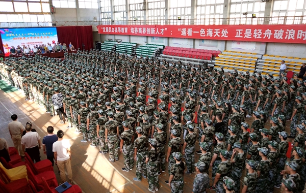 据悉,此次军训为期12天,内容包括军事队列、拳术训练,教唱军歌,内务规范,安全教育及演练,国防知识讲座,汇报表演等。动员大会结束后,学员们均表示将以饱满的热情和昂扬的斗志,体验精彩的军训生活,在校园留下青春的奋斗足迹。(图/苏勇 李浩 文/苏勇)