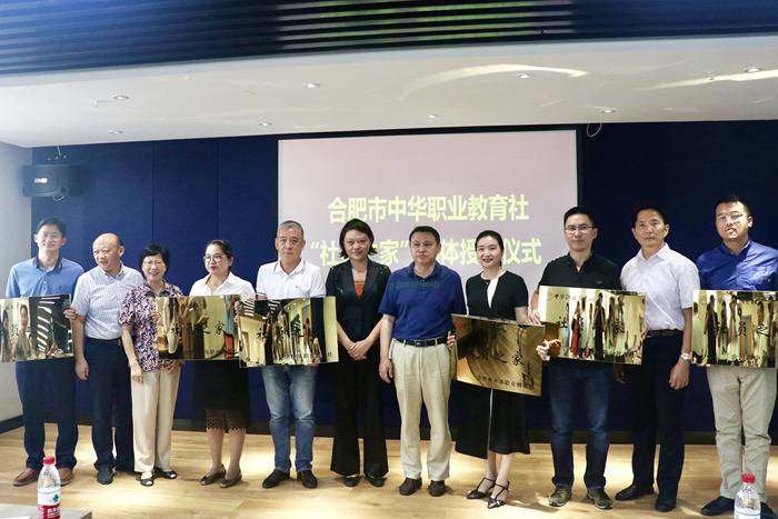 9月4日下午,合肥中华职教社在安徽青松食品有限公司研学科普实践教育基地举行“社员之家”集体授牌仪式。合肥市委常委、统战部部长陈晓波,安徽省中华职教社专职副主任李光浩,合肥市委统战部副部长、合肥中华职教社副主任李殊,365集团董事长、党委书记、安徽省当代社会主义核心价值体系研究中心主任、合肥中华职教社副主任陈孝云,合肥职业技术学院副院长、合肥中华职教社副主任周晓隆出席。合肥中华职教社副主任兼秘书长李嘉华主持授牌仪式。