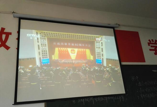 12月18日上午10点,思政教研室组织了2018级电子商务、动漫设计、建筑动画、财务管理四个专业近200余名学生在阶梯教室观看了《庆祝改革开放40周年大会》直播,其余班级在会后观看了录播。全程2个半小时的直播,学生们看的专心致志,边看边做记录。会后回收观后感486份。思政教研室趁着大会的“新鲜热度”开展了学生座谈会,由全体思政教师和12名学生干部,26名学生参加。会上,教研室主任张洁老师介绍了改革开放的背景和意义,传达学习习近平总书记在庆祝改革开放40周年大会上的重要讲话精神。各位思政教师发表了各自的观后感,侯庆双老师提到:作为思想政治理论课教师,一定要不忘初心、牢记使命,为建成社会主义现代化强国,实现中华民族伟大复兴,培养德智体美劳全面发展的社会主义建设者和接班人贡献自己的力量。