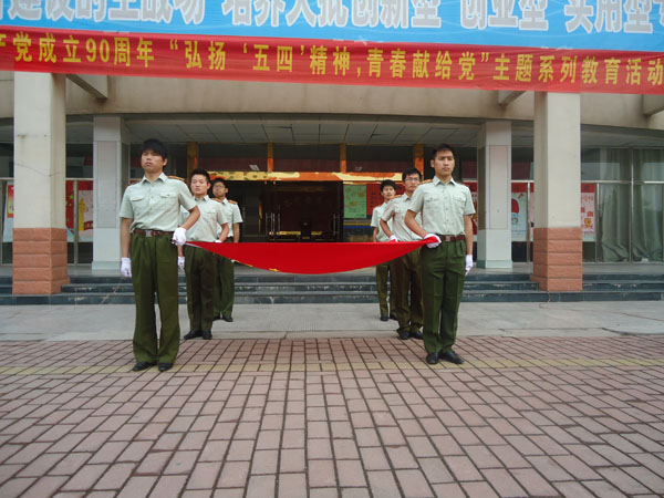 5月4日清晨,绿海学子在科技楼广场举行盛大集会,为隆重纪念成立九十周年,五四运动九十二周年,积极响应团、全国学联关于开展“弘扬“五四”精神 青春献给党”的主题活动的启动仪式。