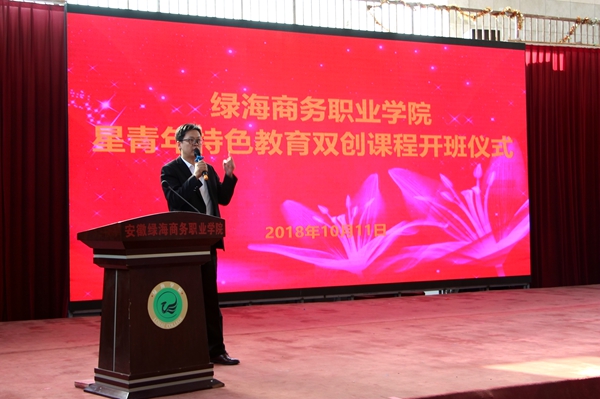 活动期间,吴俊成从政策、形势、机制体制、社会环境、服务条件等方面对双创工作进行了剖析,阐释了当代大学生的双创优势以及双创对自身成长、成才、成功的促进作用和重要价值。学生代表徐恒艳发起倡议,希望绿海学子要珍惜机遇认真学习,克服困难努力学习,融合实践分享学习。相信双创课程会给我们带来不一样的成长路径,相信我们会用优异的成绩向学校递上一份满意的答卷。