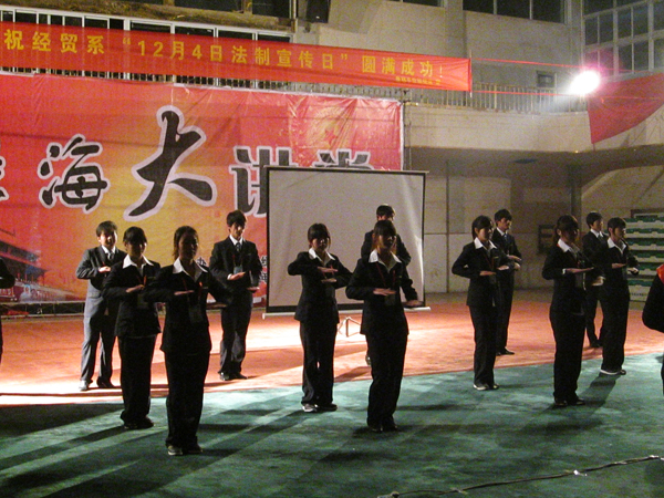 为了让当代大学生能够更好的知法懂法守法用法,建设更好的学风、校风,创建和谐校园。经贸系在体育馆二楼举办了法制宣传晚会。学院副院长计承光参加了此次活动。