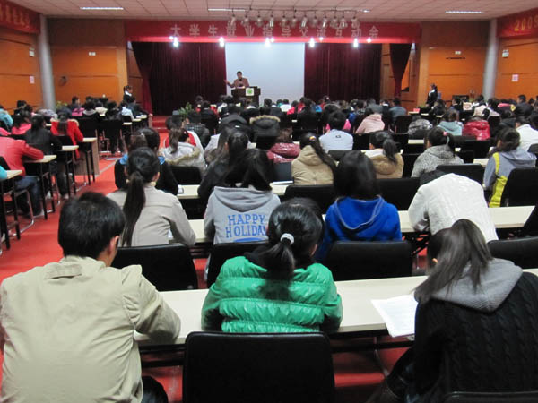 全国徽商理事会秘书长、徽商杂志社运营总监许以信为大学生作就业指导报告。讲座主要围绕着就业形势分析、大学生职业生涯规划、以及如何确立新时期下的就业观念等焦点话题展开,活动当天吸引了200余名学生前来参加,现场气氛十分活跃。许以信老师结合自己在基层工作的亲身经历现身说法,鼓励大家到基层去锻炼,增长才干,要求同学们在大学期间要努力打造自身的特长,提高社会适应能力和抗挫折能力,培养肯于吃苦、甘于奉献、勇于创新的精神,同时对学生们所关注的问题一一给予了解答,使在场的学生们对当前的就业环境有了更加深刻的了解,同时对自己的就业观念也有了一个全新的认知。
