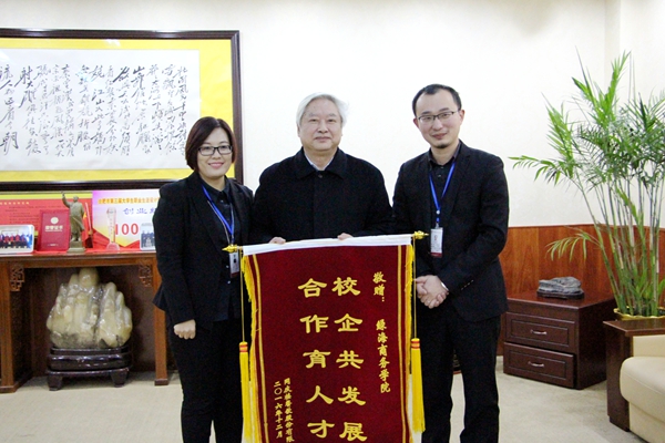校企共发展 合作育人才 同庆楼集团向绿海学院赠锦旗