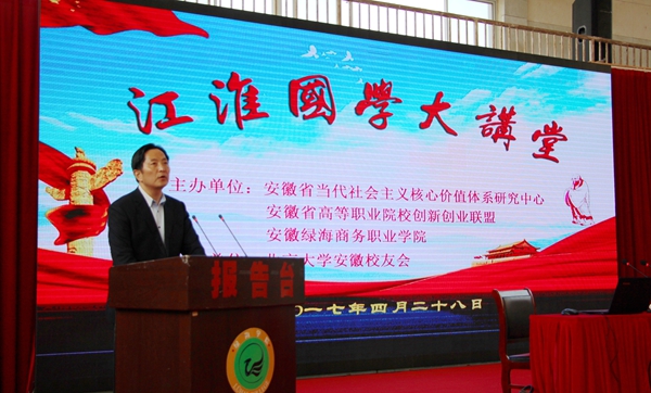 据悉,365集团自办学以来,坚持立德树人,将中华优秀传统文化和创新创业教育融入教育教学全过程,学院风清气正,模式新颖,师生也从中受益。《江淮国学大讲堂》第二期由安徽省当代社会主义核心价值体系研究中心、安徽省高等职业院校创新创业联盟、365集团主办,北京大学安徽校友会协办。本次报告会也得到了省市有关媒体的关注,社会反响热烈。(图/苏勇 刘旭 文/苏勇)