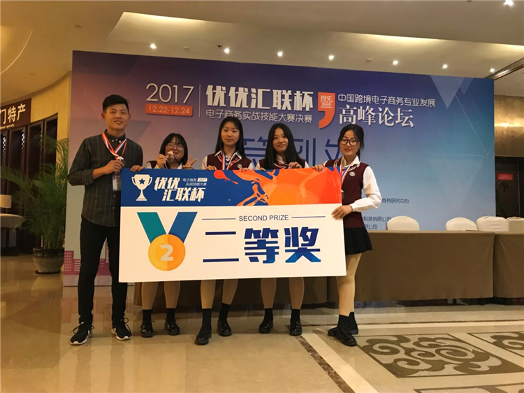 1、2017年12月,电商专业学生参加“优优汇联”杯全国电子商务综合技能大赛,获团队二等奖。