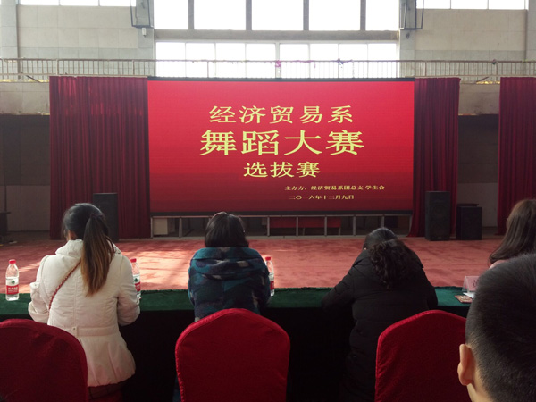 12月9日,由经济贸易系举办的以“舞动青春”为主题的舞蹈大赛在体育馆二楼进行。担任此次大赛的评委老师有张绚怡主任、汪芳老师、黄松老师以及各班辅导员老师。
