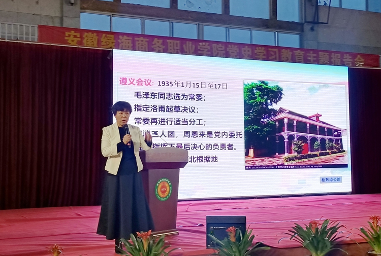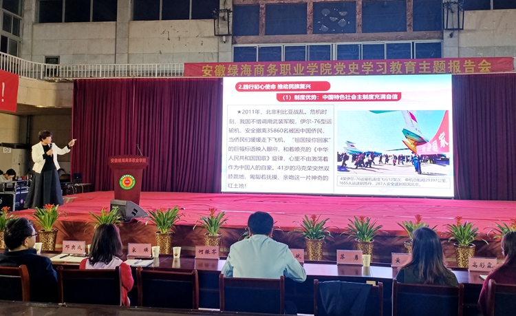 党的历史是一本最生动、最有说服力的教科书,蕴含着生生不息的思想力量、文化基因和精神动力,为扎实开展党史学习教育,创新学习教育形式,4月22日晚,由延安红色革命文化研究会会员、延安社科联专家委员会委员、延安市干部教育师资库成员何振苓教授为学院全体学生作《改天换地一百年 风华正茂再出发》为主题的党史学习教育报告。学院,党委委员周宗斌,宣传部长苏勇,党群工作部副部长邓奕成,以及六个支部书记,全体辅导员,部分学生代表参加。报告会由学生处负责人、团委书记朱小明主持。