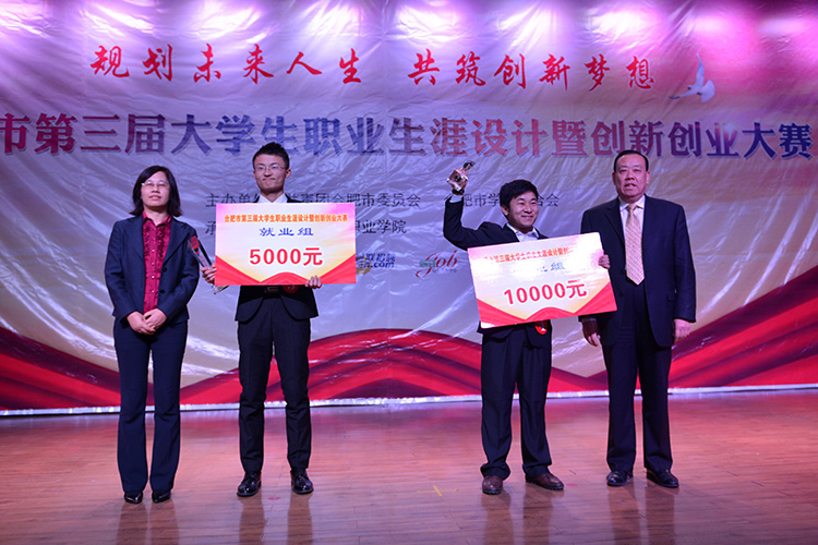 绿海星青年王浩哲获合肥市第三届大学生职业生涯设计暨创新创业大赛金奖,市人大、市政府领导为其颁奖