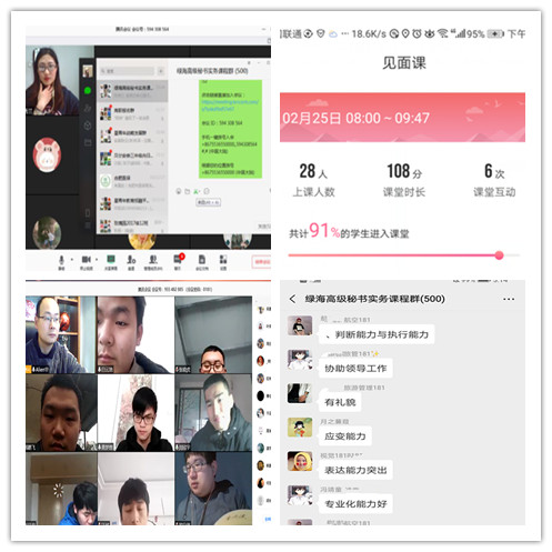 2月24日,学院的线上教学如期开展。为保证线上教学质量,学院对课程设置、授课老师进行科学统筹,提出具体的标准要求,授课教师结合线上教学特点,准备充分,认真授课。签到、小组讨论、课堂互动、作业测验……学生在家通过网络教学平台参与教学活动的各个环节,教师远程引导答疑、帮助学生学习课程知识。教学活动开展规范有序、有条不紊。课程在线,教学质量同样在线。在线上课程调研时,学生普遍感到“线上教学真‘走’心,很喜欢”,到课率高,参与踊跃。目前,学院线上教学工作稳步推进,教师们正加紧准备更多的课程资源投入线上教学。