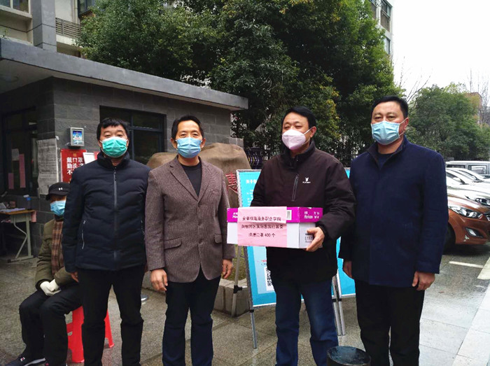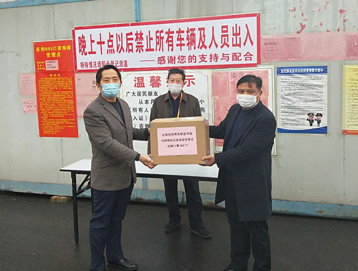 2月28日, 春寒料峭、细雨绵绵。365集团董事长、党委书记陈孝云在学院党委委员、工会主席周宗斌,保卫处处长程光胜等陪同下走访学院所在辖区--合经区锦绣社区桃源居委会及合肥滨湖惠园小区,慰问社区防疫一线工作人员,向奋战在抗疫一线的志愿者及社区工作人员传递绿海人的温暖和力量,并送上防疫物资900支口罩以表爱心。