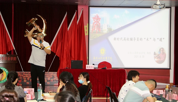 各系部主任依次就各专业的“课程设置、师资力量、专业特点和就业前景等情况的进行了详细的介绍。学生处副处长朱小明特别邀请全省辅导员大赛获奖者杨东老师进行了经验交流,与大家探讨了新时代高校辅导员的“术”与“道”。学生处副处长朱昱霖特别邀请了原星青年(国际)商学院副院长、国家一级人力资源师赵斌给老师们分享了“基于性格色彩分析的高效沟通”。此外,本次培训的另一个重点是对老师们进行“星青年人才培养模式之12345工程”的系统学习与训练。此次辅导员职业技能培训内容丰富实用、形式灵活多样、效果十分明显,所有参训人员在学习讨论中成长,在实践历练中收获满满。