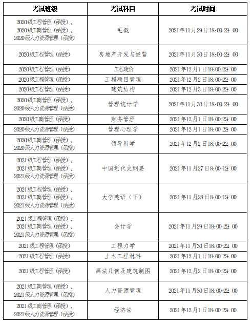 根据安工程本部的相关要求,结合合肥函授站实际情况,现定于2021年11月27日--12月3日进行本学期期末考试。