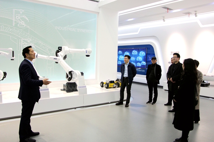 在有关部门的关心推动下,2020年下半年,365集团与哈工大机器人集团合作,正式成立哈工现代智能与健康学院,深入开展产教融合校企合作,致力于培养高质量计算机应用、现代人工智能、医疗健康科技人才服务哈工大在安徽及全国300多家现代智能型科技企业。3月10日下午,365集团党委书记、董事长陈孝云应邀率信息工程学院、信息中心、继续教育学院等相关部门负责人赴哈工大机器人(合肥)国际创新研究院考察交流,哈工医疗教育总经理张强、哈工大机器人集团重大项目办总经理沈志强热情陪同调研。