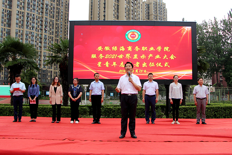 陈孝云代表学院领导,向为组建志愿者服务队的老师、积极参与的同学们表示衷心的感谢和热烈的祝贺。结合学院星青年人才培养模式,他对志愿者们寄予热切期望。要坚定理想信念,勇于担当;以积极的心态、昂扬的精神投身到这次志愿服务中;要强化责任意识,保持良好作风,充分发挥特长,主动服务,文明服务,体现个人素质修养,保证服务工作质量,体现大会服务水平;要树立良好形象,充分展示安徽人民热情好客,文明礼貌、自强自信的良好形象,展示绿海星青年吃苦耐劳、乐于奉献、朝气蓬勃的优良品质和精神风貌,为服务经济发展贡献绿海的力量。