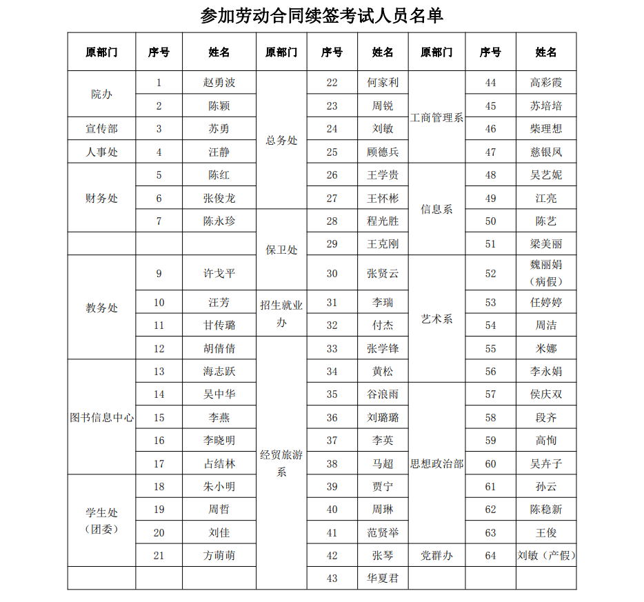 八、劳动合同续签及考试名单(见附件)。九、考试内容为《劳动合同续签考试题A》。