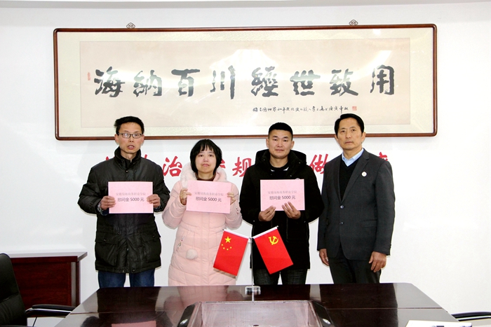 亓四华指出,按照往年的规定,学院董事会、党委高度重视,专门开会审议部署,根据个人申请,进行走访了解,研究决定对李晓明同志、段齐同志、高恂同志的家庭生活困难进行慰问。较往年的标准提高到每人5000元,这充分体现了学院领导对三位老师在过去的一年里,为学院的建设和发展所作出的成绩给予充分肯定和认可,更是一种期望和鞭策。绿海学院是个大家庭,也是一个温暖的集体,希望三位老师要以集体大家庭为荣,和广大党员携手共进,努力拼搏,共创学院美好未来!