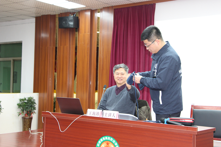 在1个多小时的讲座中,王海涛老师用诙谐幽默的语言、图文并茂的课件、生动详实的案例,围绕紧急救护知识、心理压力预防疏导、慢性心血管疾病预防、职业病的防治等方面进行深入浅出的讲解,并就心肺复苏、血压测量以及常见职业病的自我纠正、锻炼方法等进行现场示范,不时与大家互动交流。