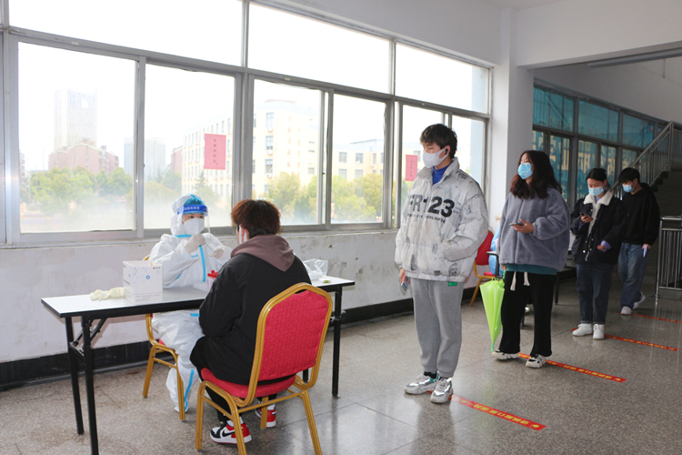 3月22日下午,根据合肥市疫情防控指挥部工作要求,学院防疫办组织协调全院师生员工进行第二次全员核酸检测,确保“应检尽检,不落一人”。学院督导专员、党委第一书记孙永现场指导核酸检测工作,叮嘱一线人员注意做好防护措施。整个过程科学规范、高效快速、井然有序,这不仅得益于医护人员的专业细致,也离不开学院广大师生以及党员志愿者的同心协力。