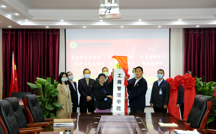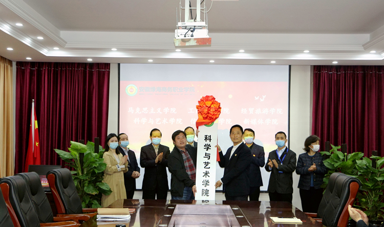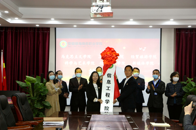 在与会人员的共同见证下,陈孝云为新成立的二级学院依次授牌。