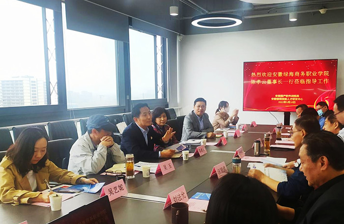 参观结束后,陈孝云一行与安徽省人社厅原副厅长刘光明,安徽省职业与成人教育学会会长李兴旺,安徽银领技能人才研发中心等领导、行业专家、相关企业负责人汇聚一堂,进行了深度沟通交流。会议由李兴旺主持。
