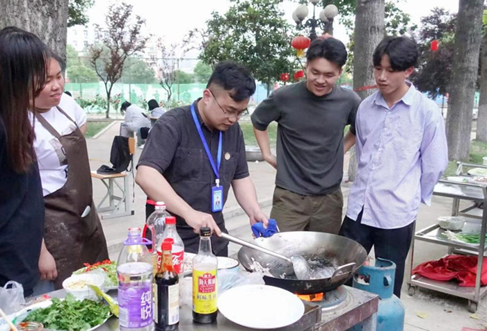 活动中,陈孝云老师走进学生当中了解学生的在校感受,与同学们展开了亲切交流。对学生们动手做饭,学习家务表示充分认可,陈老师告诉同学们:父爱如山,母爱似海。孝敬父母,是中华民族传统美德。古代就有“卧冰求鲤”、“百里负米”等二十四孝道故事,作为新时代的星青年我们不仅要学习知识,还要走出课堂,去生活当中验证学到的道理。理论与实践结合,动脑与动手配合,才能学为所用,学有所得。孝敬父母并不是让大家担山压海,做一顿饭,洗一次衣,打扫一次卫生,都是孝敬父母的表现,大家平时诵读《孝敬》更要注重道德实践。我们星青年要体会“一日一善 一日一练 一日一获 一日一结”的深刻内涵,通过做饭、做家务这样的小事向父母传递敬意,为父母分担压力。
