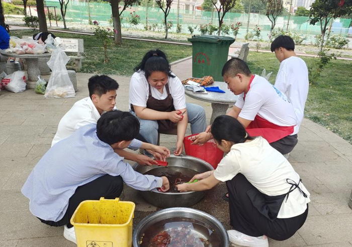 本次活动完全由学生们自主筹划,在学生递交学院的策划书里,除了烹饪美食,一个宿舍出一道菜以外,还现场连线母亲,表演了《感恩的心》合唱节目,表达对母亲的感恩之前。活动现场,同学们积极参与,各有分工,欢声笑语,热情洋溢。“我很喜欢这次活动,疫情期间一直没回家,特别想念爸爸妈妈。这次活动我负责的是刷锅、洗碗,辅导员说我干得很好,我回家了也要给爸爸妈妈做做饭,洗洗碗。把对爸妈的爱落实到生活细节当中,让爸妈可以轻松一点。”旅游管理211班苏雨辰同学说。“这次活动我负责清理龙虾,我很喜欢吃龙虾,以前妈妈经常给我做。现在自己动手才发现清洗龙虾也不简单,等放假回家后,我也要亲手给爸妈做一份蒜蓉龙虾,感谢爸爸妈妈养我长大、供我上学。”高铁213班陈豪同学感慨说。纸上得来终觉浅,绝知此事要躬行。只有亲自去做才能有所感悟,明白父母的艰辛,懂的生活的不易,才能锻炼出一颗真挚的感恩之心。