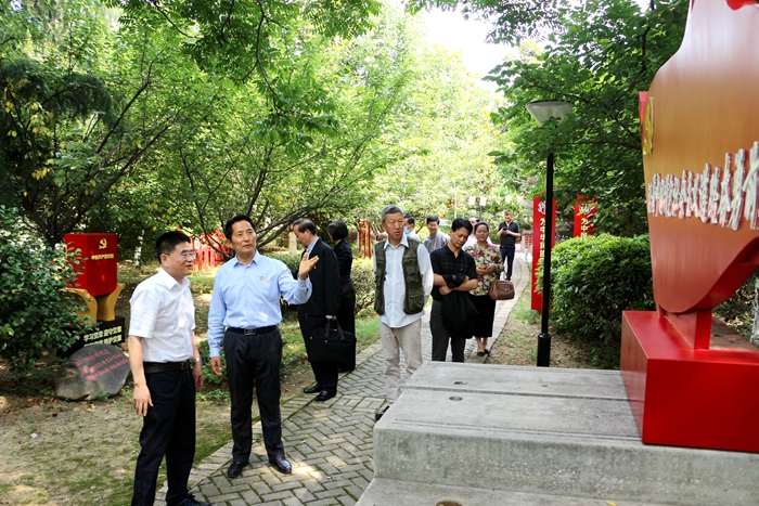 在安徽宝业建工集团有限公司党委书记杨忠命热情陪同下,陈孝云一行先后参观该集团党建公开栏、党建文化园、党建工作展示馆、企业史馆、杨忠命书记工作室、职工书屋等。