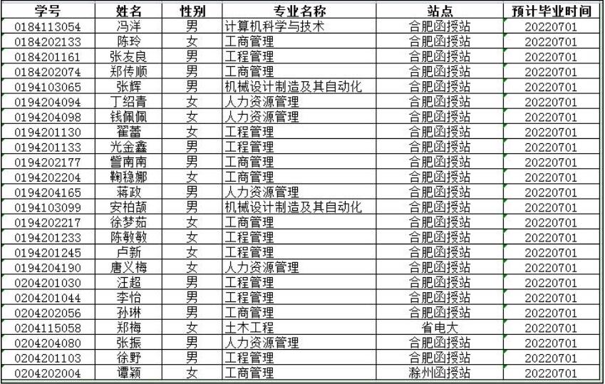 关于2022届预毕业生未进行电子信息采集学生名单的公示根据《安徽工程大学高等学历继续教育学生管理规定》,在籍期间考试成绩合格并按要求参加电子信息采集的,方可准予毕业。经多次提醒、催促,仍未参加电子信息采集(电子采像)的2022届预毕业生名单如下: