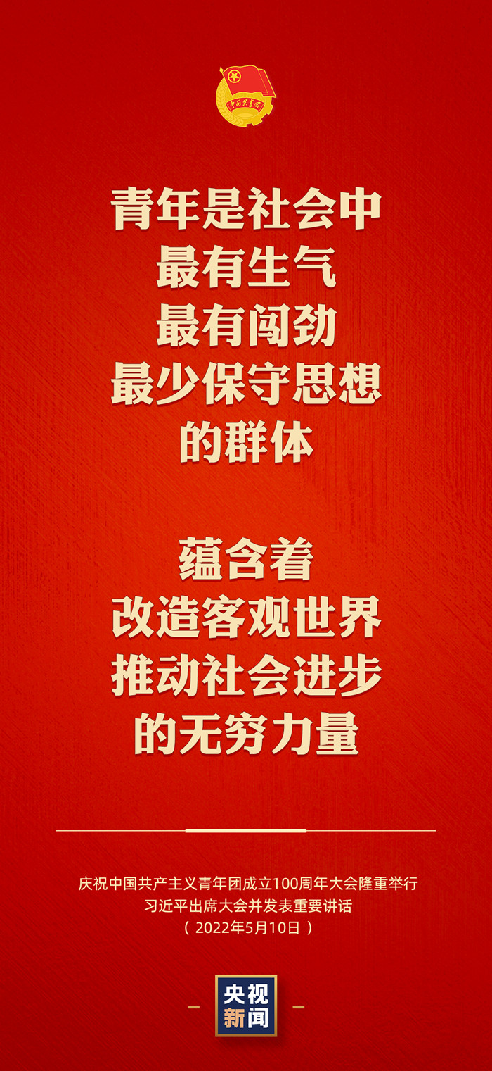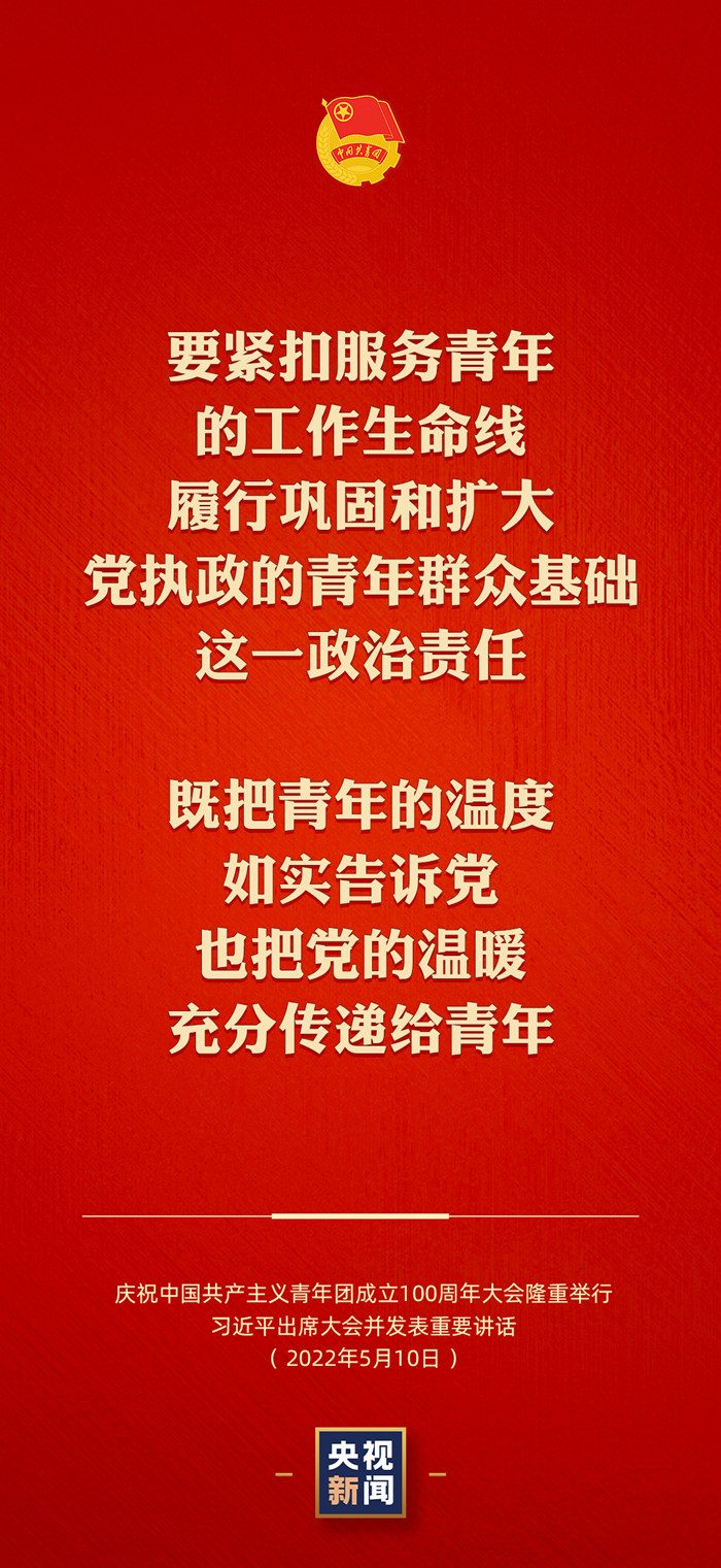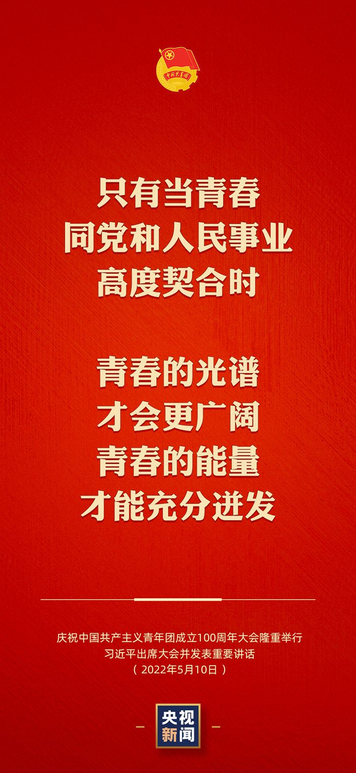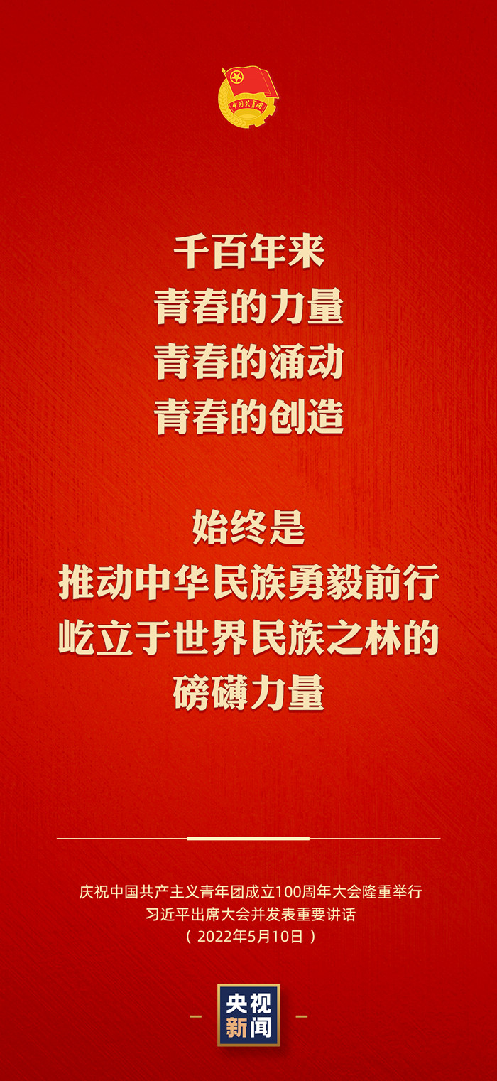 5月10日上午,庆祝中国共产主义青年团成立100周年大会在北京人民大会堂隆重举行。中共中央总书记、国家主席、中央军委主席习近平总书记出席大会并发表重要讲话。