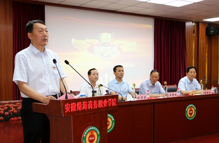 督导专员、党委第一书记孙永宣读“十佳绿海人”表彰决定。号召全体教职员工以榜样为激励,进一步振奋精神、开拓进取、扎实推进各项工作展开,全面提升教育教学水平,为学院高质量发展再谱新篇章。