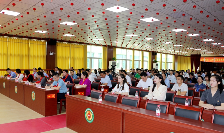 立德树人守初心,职教兴国担使命。为总结本学期工作,表彰先进个人,筹划部署新学期工作,全面提升学院办学育人水平,6月24日上午,学院2021-2022学年第二学期总结暨表彰大会在图书馆报告厅举行。学院党政领导陈孝云、孙永、石秀和、常务副院长、刘兴杰 、张以亭、史锋、郝欣富、陈艺鸣出席会议,全体教职员工参会。会议由党委委员、文化行政总监、高建办副主任张以亭主持。