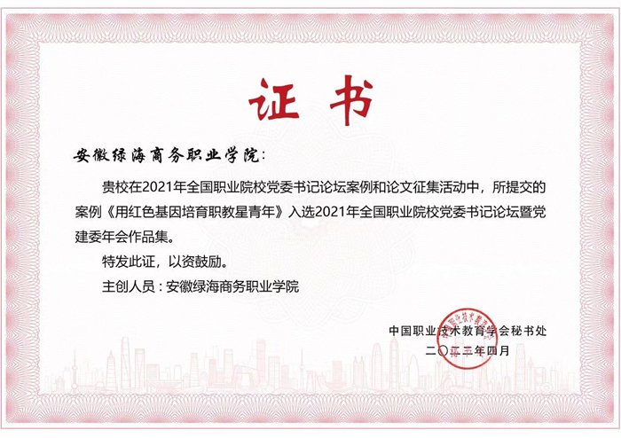 近日,365集团从中国职业技术教育学会获悉,由中国职业技术教育学会党建工作委员会组织开展的2021年全国职业院校党委书记论坛案例和论文征集活动已圆满落幕。经过专家评议,我院提交的两件案例《守正创新 信念坚定 做新时代职教兴国的追梦人》、《用红色基因培育职教星青年》成功入选2021年全国职业院校党委书记论坛暨党建委年会优秀作品集。