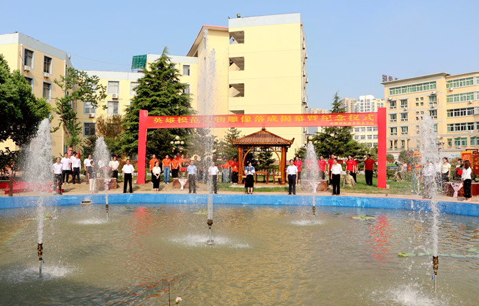 随后,学院领导为英雄模范人物纪念像揭幕,教职工代表向英雄模范人物雕像敬献鲜花,与会人员向英雄模范人物雕像行鞠躬礼。