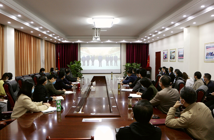 参会人员集中观看了《新闻30分》,聆听了习近平总书记在延安革命根据地的重要讲话。习近平总书记指出,这次和中央政治局常委同志一起来,就是要宣示新一届中央领导集体将继承和发扬延安时期党形成的优良革命传统和作风,弘扬延安精神。全党同志要自觉把以人民为中心的发展思想贯穿到各项工作之中,扎实推进共同富裕,让现代化建设成果更多更公平惠及全体人民。当年中国共产党人就是从延安的山沟沟里克服了艰难险阻,走向了更广阔的天地。今天在前进的新征程上,党一定会在新的赶考之路上向历史和人民交出新的优异答卷。