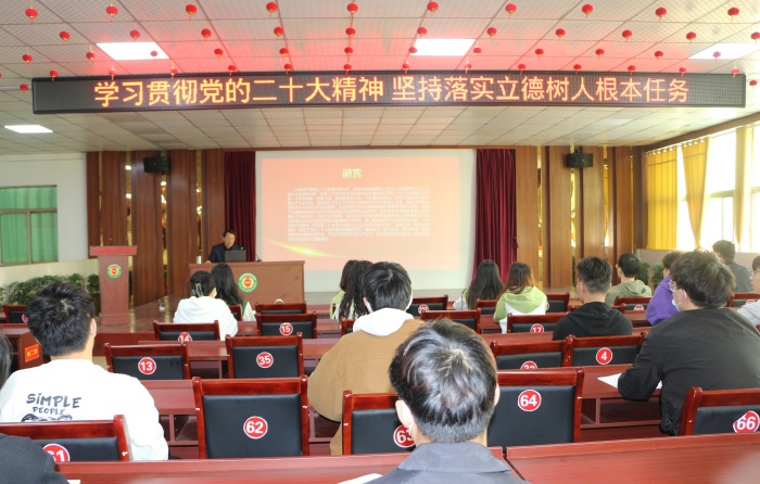 11月10日上午一二节课,孙书记在图书馆二楼会议室,以《学习党的二十大,永远跟党走,奋进新征程》为题,给编导211、表演211、国标211、视觉211、体育211五个班的学生上了一堂精彩的思政课。