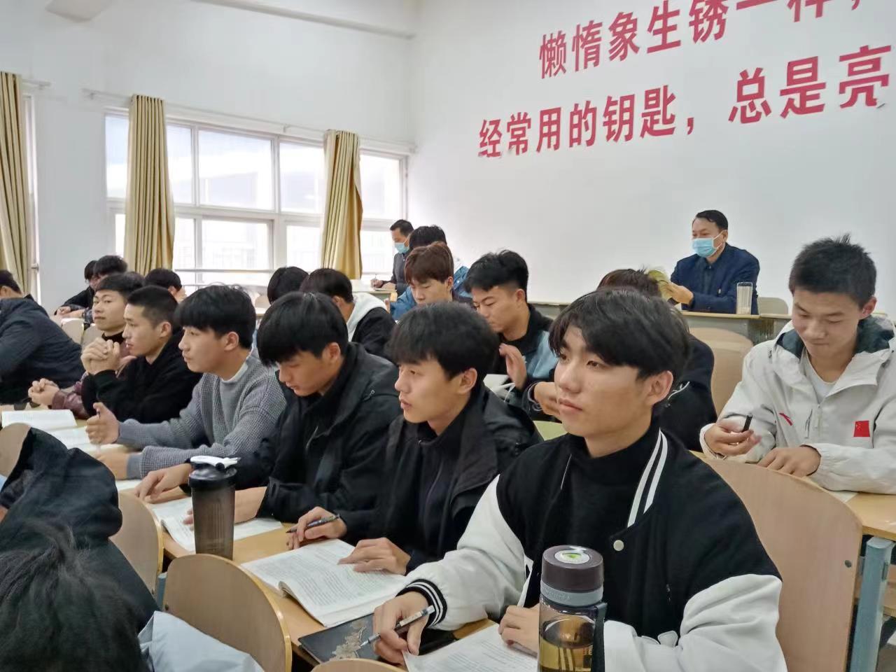 为积极贯彻“三全育人”教育理念,高质量推动地方技能型高水平大学建设。教育厅督导专员、校党委书记孙永深入我院教学一线检查教学情况,于2022年11月14日下午一点四十准时来到了阶梯教室五,听取了韩梦怡老师的《思想道德与法治》第三章第二讲做新时代的忠诚爱国者课程,通过课堂教学观察教师的政治素养、教法教态以及学生上课精神面貌、师生互动等情况,给教师以指导、给学生以鼓励。