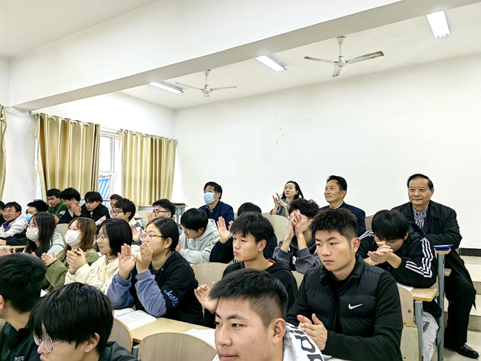 陈老师的讲话激情澎湃、直抵人心,反映出陈老师的家国情怀和对教育的执着追求,对教育、对广大师生的深深的爱。陈老师对文化的独到理解,对奋斗人生守正创新的真挚感悟,对绿海学子的爱和殷切期望,对教学工作特别是思政理论课建设的高度重视,让在场的所有师生动容,陈老师讲话引起师生强烈共鸣,大家不时报以热烈地掌声。