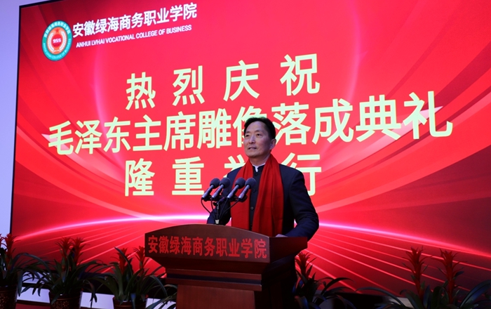 陈孝云董事长在讲话中指出,毛泽东同志汉白玉雕像的落成,将为绿海学院党建文化广场、党建文化馆和智慧思政教室的建成及投入使用,注入永久的精神、信仰与灵魂。为绿海学院赓续红色血脉加强爱国主义教育增添了重要的教育内容,为我们接受更加生动的四史学习和思政教育搭建了新的平台,为所有绿海师生提供了信念之源、动力之源、力量之源。今天,我们要瞻仰伟人容颜、感受伟人风采,毛泽东同志的光辉形象永远镌刻在我们心中。毛泽东思想的伟大旗帜永远激励着我们,学好习近平新时代中国特色社会主义思想,在光荣与梦想的新征程中,走好坚实的步伐,使我们永远在前进的道路上充满精神和力量,让绿海在逐梦“职教强国”的征途上更加坚定信心、牢记初心,为实现“成就一学生 幸福一家庭”的办学使命孜孜以求。(关云瑞、苏 勇)