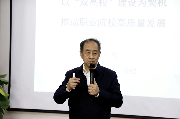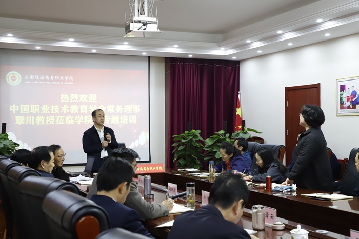 安徽当代社会主义核心价值体系研究中心主任、学院董事长、星青年文化研究院院长陈孝云对覃川教授的莅临表示真诚欢迎。他向覃川教授介绍绿海学院“12345工程”,并就该工程对推动学校高水平职业大学建设的具体意义和方法,与覃川教授进行深度讨论。他指出,“双高”建设是提升学校核心竞争力,提高办学影响力的重要标尺和抓手,是绿海学院实现高水平职业大学建设目标必由之路。此次专题培训的主要目的就是要进一步统一思想、凝聚共识,明确目标方向,深刻领会“双高”建设的内涵与要求,提升攻坚克难的素质能力,促进教师发展成长,为建设高水平职业大学注入强劲动力。他强调,全体学员要认真领会本次学习内容,并且做到真学、真做、真感受,将培训收获贯彻落实到实际工作中,发挥创造力和主观能动性,加紧推进各项任务,力争“双高”建设取得优异成绩。(文/吴珉 图/苏勇 关云瑞 审核/张义廷)