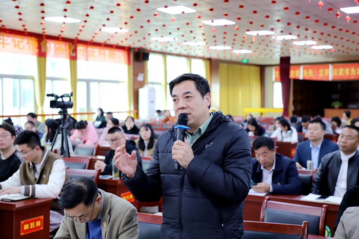 当天上午,覃川教授以《以“双高校”建设为契机,推动职业院校高质量发展》为主题,从建设“双高校”的目的意义、建设目标、建设路径与模式等方面,理实结合、生动深刻、深入浅出地为与会人员进行专业讲解和经验分享。覃川教授的精彩讲座引发与会人员积极思考,各二级学院院长、职能处室负责人纷纷主动提问,结合具体工作实际,就强化校企合作、产教融合的稳定性、专业课与公共课教学实际、星青年培养模式成果评价、机制的建立、打造院校特色、中国特色现代学徒制的组织实施、“双师型”教师培养举措等内容,向覃川教授求取先进经验,覃川教授一一耐心解答。