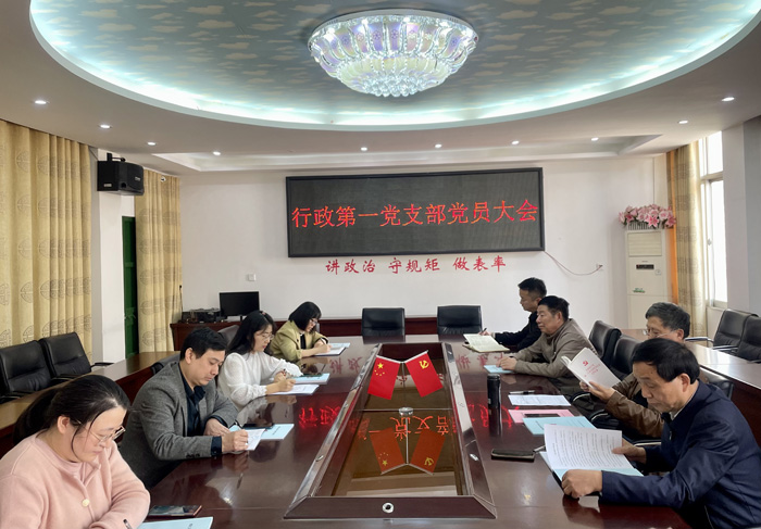 新当选的党支部委员召开行政第一党支部委员会第一次全体会议,选举产生姚如富为支部书记、苏勇为支部副书记兼统战委员、甘传璐为组织委员、李燕为宣传委员、江亮为纪检委员。