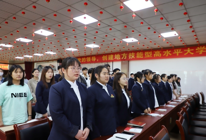 信息工程学院人工智能221班李楠同学代表全体学员作出庄严承诺:以身作则,充分发挥带头作用;勇于担当,认真履行职责;团结协作,切实做好培训班全体学员团队建设。大会宣布了党校考勤制度和各班班主任、班长名单。