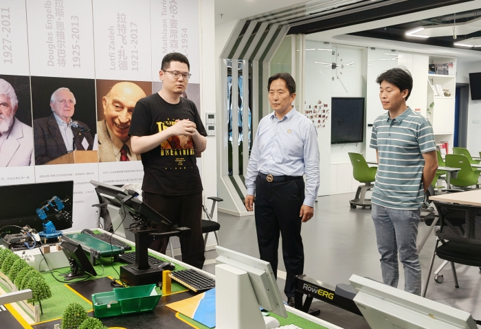 陈孝云一行还参观了国家广播电视总局重点实验室和清华大学基础工业训练中心。在国家广播电视总局重点实验室观看了顶尖的录音棚、后期制作室、试听体验厅等,感受一流的设备技术、最具冲击力的声音图像和音乐人对事业高度的执着热爱,并与高级编辑、中央电视台大型节目中心策划、导演秦新民,作曲家、歌唱家孟文豪,优秀歌唱演员云飞进行了亲切交流。在清华大学基础工业训练中心,参观了车、焊、木工、3D打印、人工智能等实验室,感受到全国一流的学府,在对职业能力的培养中,更加注重场景训练、动手能力,通过“一机、一床、一作品”提升学生对职业的兴趣与热爱,教学训练更细、更实、更新、更活。在与清华训练中心主任李双寿教授的座谈中,探讨了对职业教育发展的前景与路径,以及资源共享、协同培养、认证赋能等。