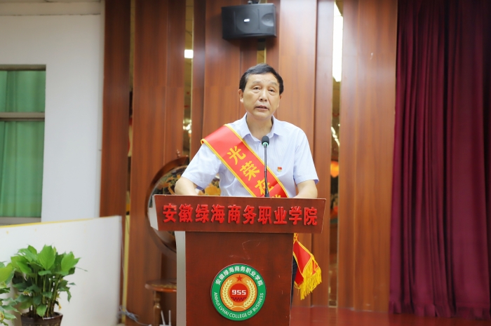陈孝云在致辞中,首先代表学校董事会、党委、行政领导班子向江传瑞同志“光荣在党50年”表示最真诚的祝贺和崇高的敬意。陈孝云指出,为“光荣在党50年”的老党员颁发纪念章是以习近平同志为核心的党中央做出的重大决定,体现了党中央对老同志的亲切关怀,蕴含着作为中国共产党员的“无限荣光”。陈孝云高度评价了江传瑞同志为党忠诚、为人谦逊的高风亮节、务实正派的工作作风和几十年来为安徽教育、为绿海领航做出的重大贡献。他强调,学校全体党员同志要以“光荣在党50年”的老同志为标杆和榜样,始终牢记并践行党的初心使命,传承我们党的光荣传统和优良作风,强化学习,提高本领,求真务实,踏实工作,为学校高质量发展贡献力量。