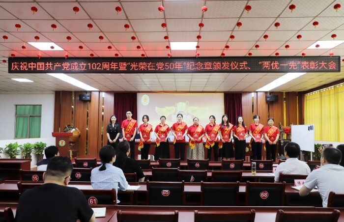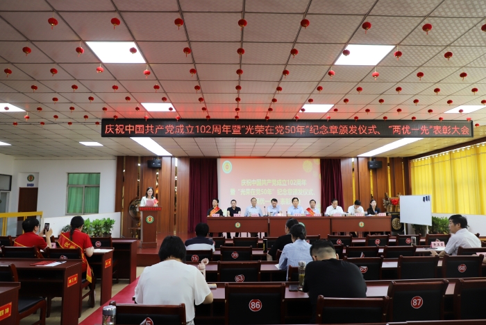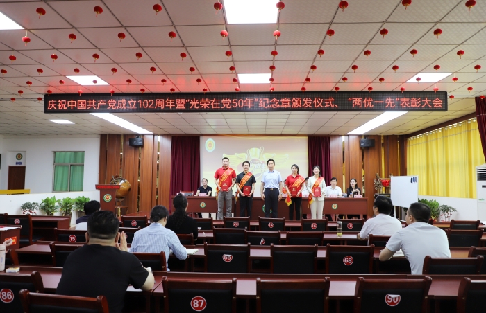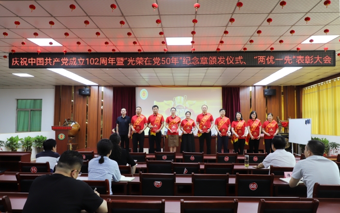 学校隆重举行庆祝中国共产党成立102周年暨“光荣在党50年”纪念章颁发仪式、“两优一先”表彰大会
